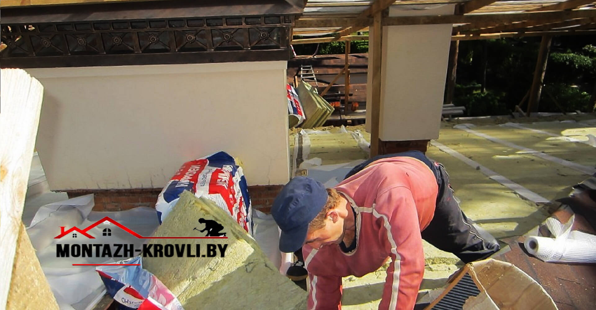 Остальные этапы монтажа "под ключ" - это утепление между стропил, устройство пароизоляции и черновой обрешетки под стропилами, подшивка карнизных свесов, установка водосточных желобов и труб, обустройство дымоходов.