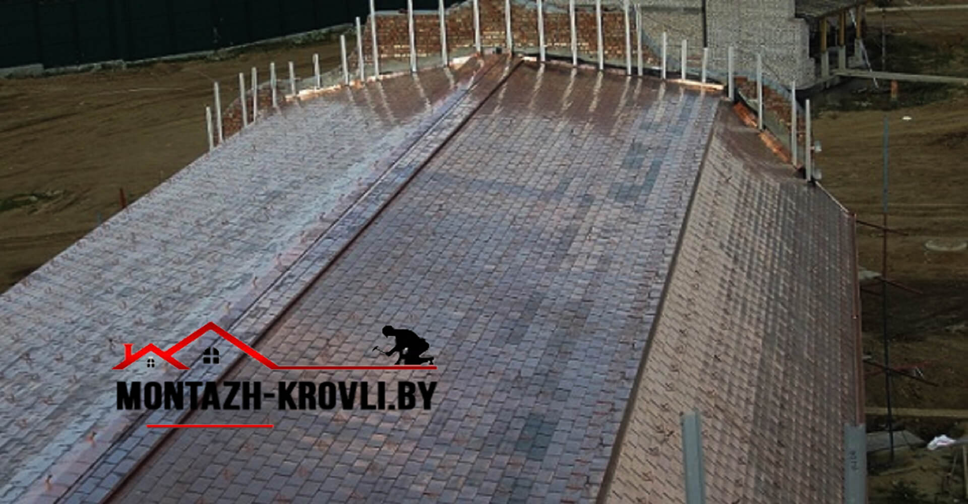 Монтировали медную гибкую черепицу со снегозадержателями и водосточной системой