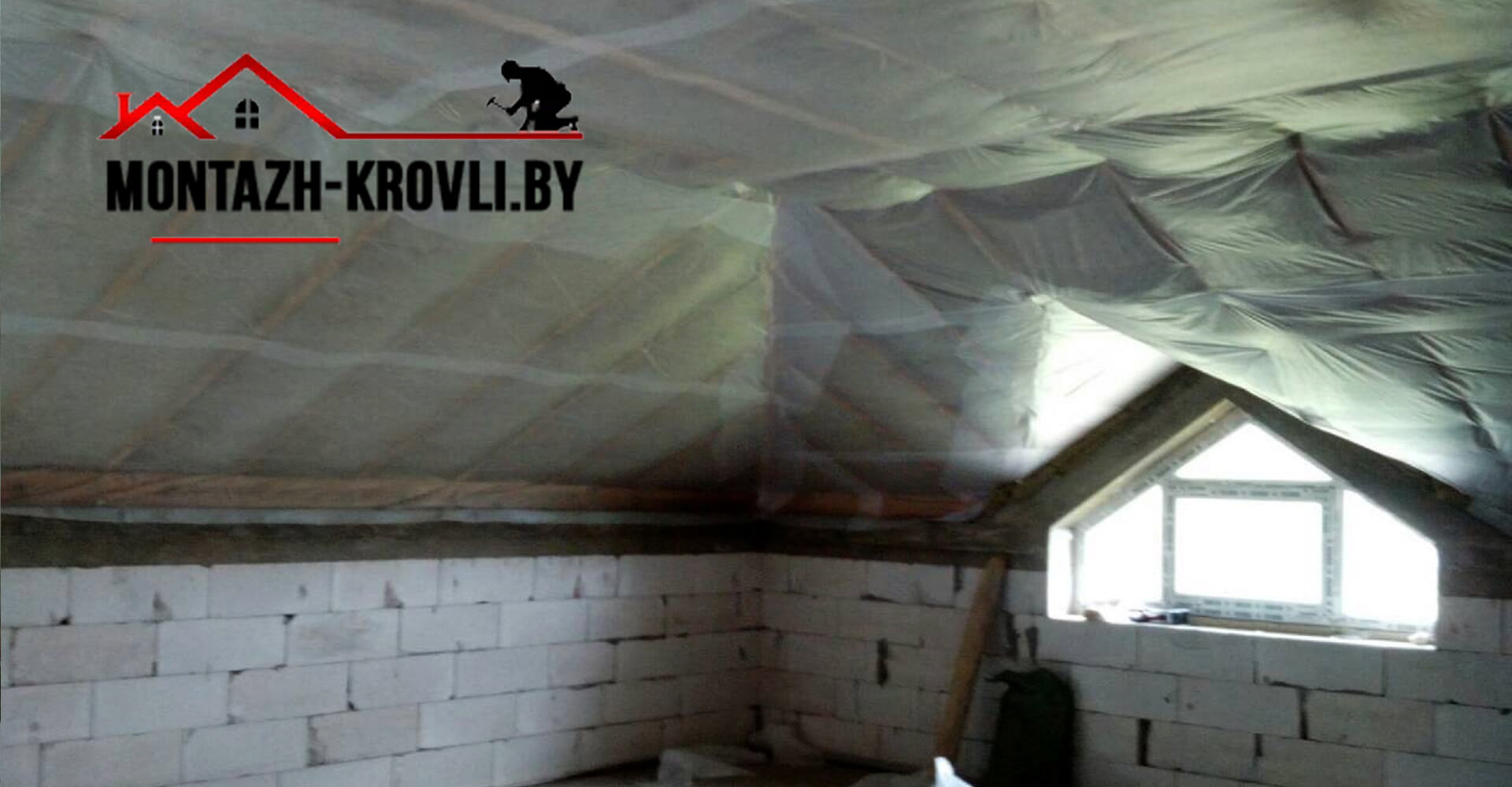 Утепление мансардного этажа, обвязка проволокой и устройство пароизоляции